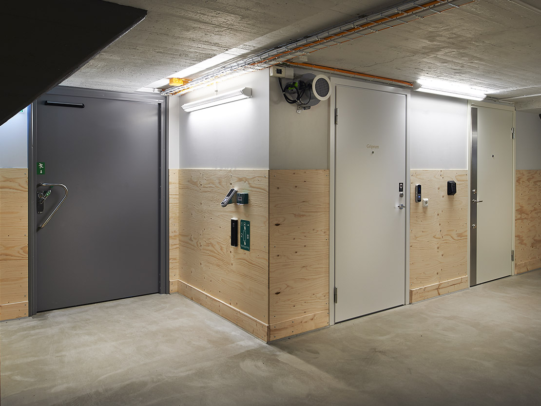Dessa utrymmen kan utrustas med klassade ståldörrar som har samma utseende som säkerhetsdörrarna till lägenheterna.