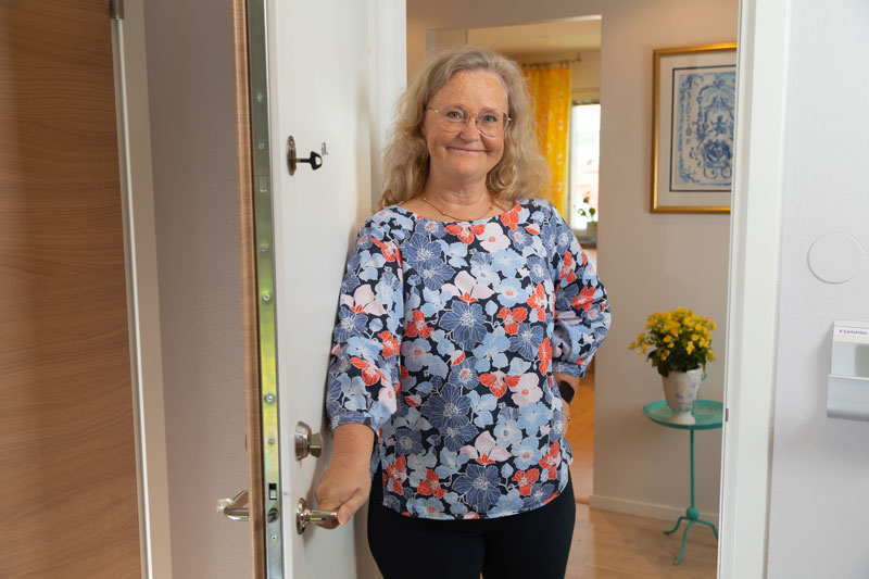 – Men i min lägenhet var den gamla dörren kvar och jag funderade också på att byta men då sade de åt mig att vänta lite, vi ska köpa in nya fina dörrar, och så blev det.