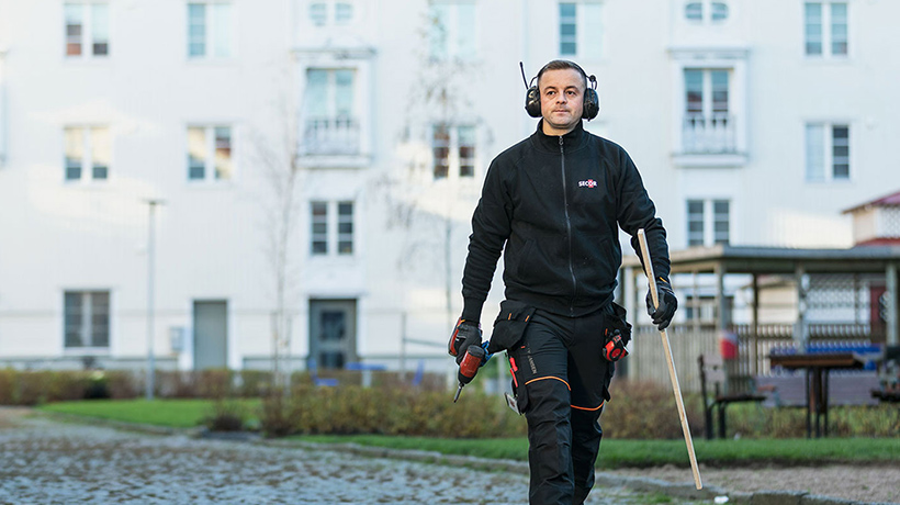 – Till slut kunde vissa av dem knappt stängas, och vi har haft flera ovälkomna besök, säger husvärd Kent Karlsson på AB Poseidon. Så när vi hade ökat tryggheten på innergården med rörelseaktiverad, ny belysning och genom att klippa ner buskage och växtlighet, så fick det bli entrépartiernas tur i år. Hyresgästerna måste ju kunna känna sig trygga där de bor. Så jag kontaktade Magnus Hunnevall på Secor, vi har ett väldigt bra samarbete.