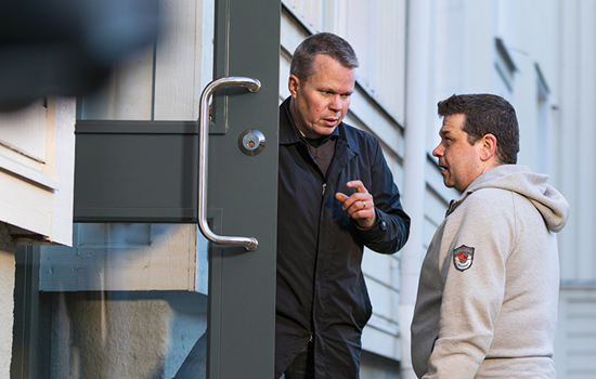 – Vi har jobbat med dem i fem år. De har bytt ungefär 100 dörrar om året sista 5 åren, och vi är väldigt nöjda med både dem och Daloc som är de som gör själva säkerhetsdörrarna, säger Martin Hansson, tekniker vid Kinda Hus.