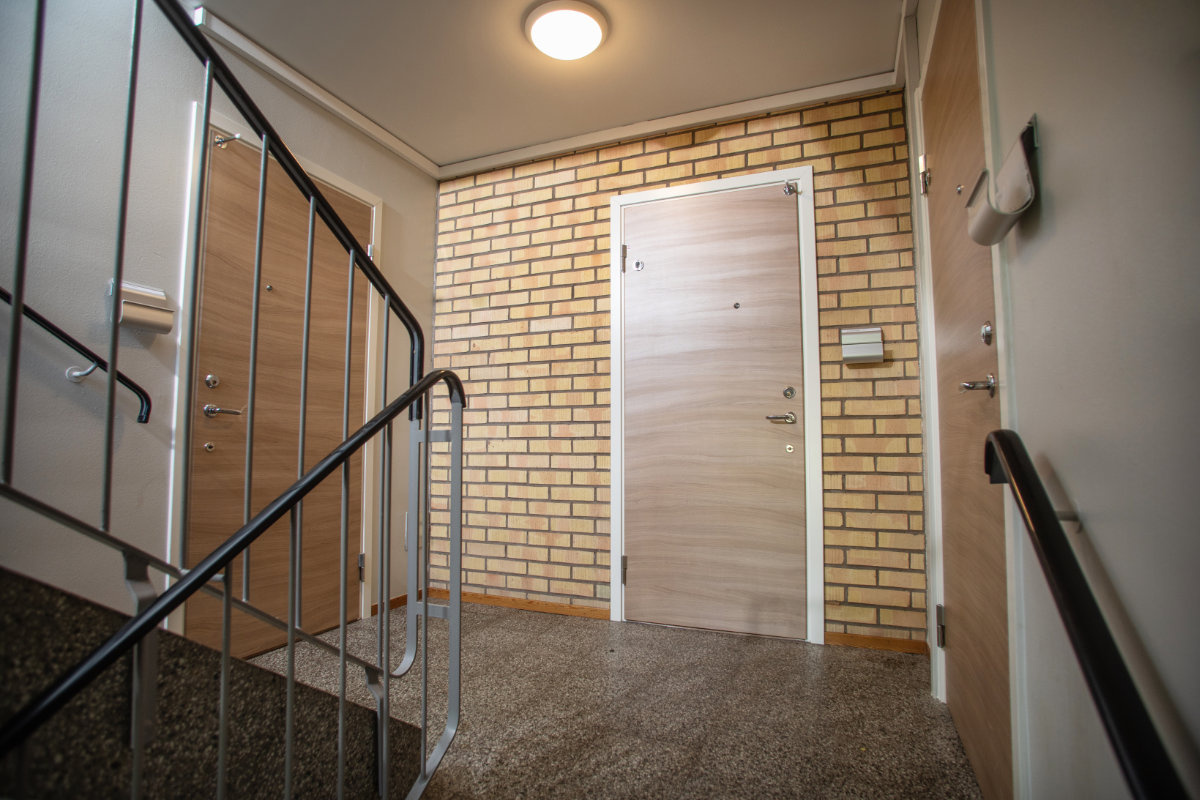 De gamla dörrarna ersätts med säkerhetsdörrar från Daloc som är certifierade för att skydda mot spridning av brand, brandrök, brandgaser och mot inbrott, samt ger en betydligt tystare och luktfriare boendemiljö.