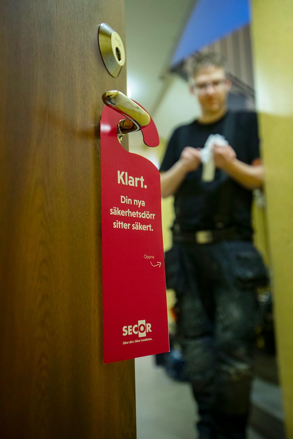 Efter traditionellt anbudsförfarande föll valet på dörrar från Daloc som skulle installeras av Secor. Dörren föreningen valde var Daloc S-43 Golden Oak som är klassad mot brand, brandgas, ljud och inbrott.